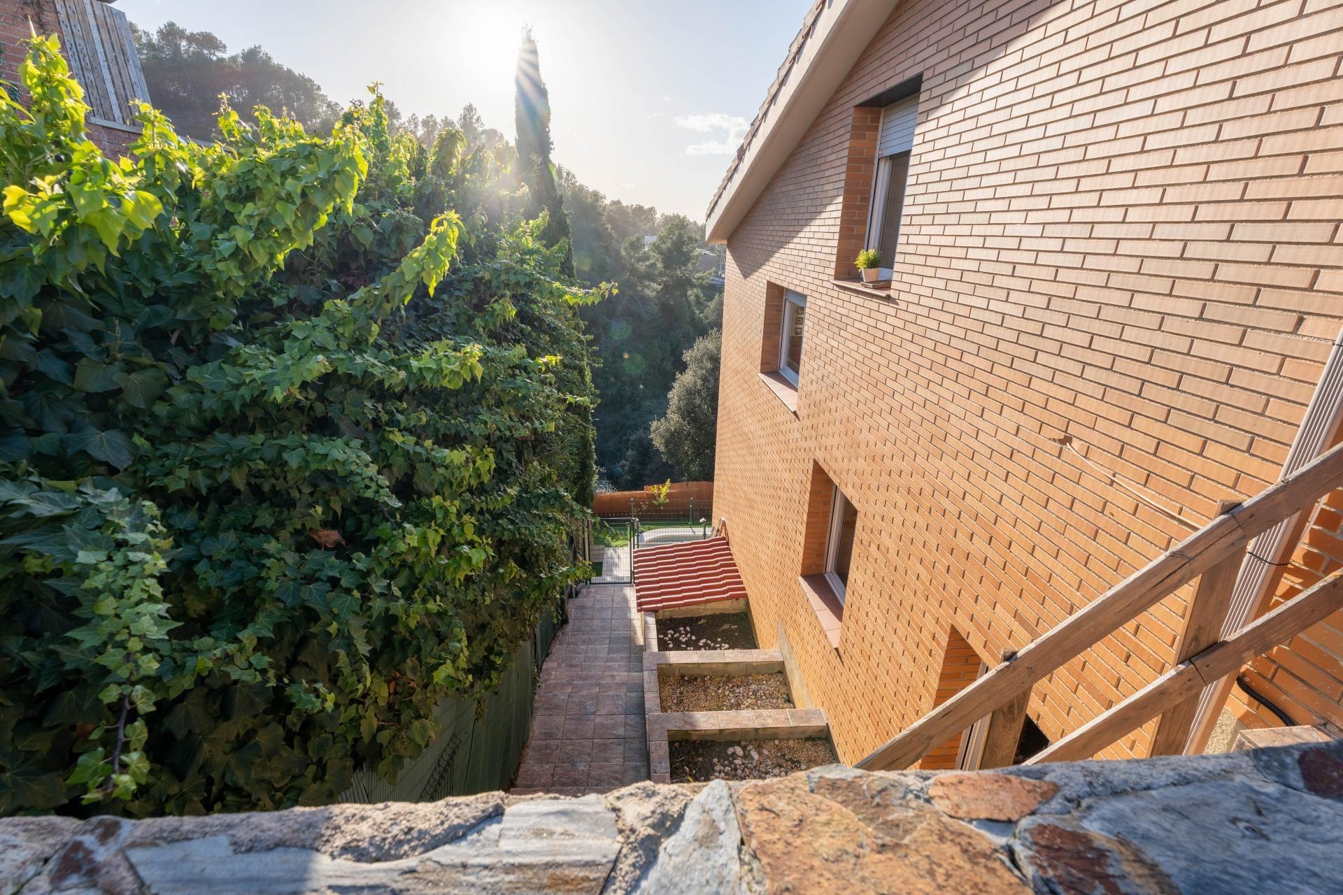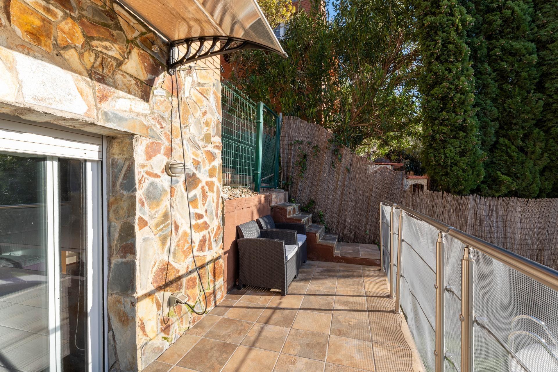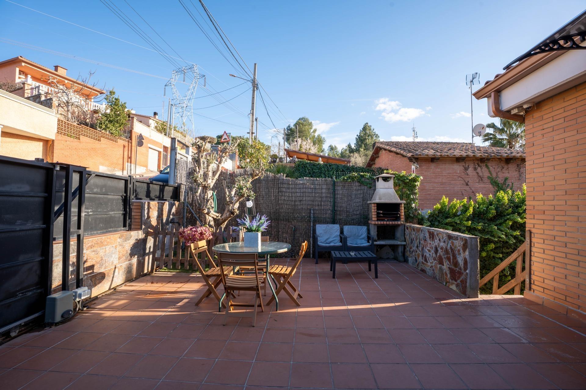 Te presentamos esta acogedora casa adosada situada en la zona residencial de Can Palet de Vista Alegre, en Terrassa. Un entorno tranquilo, rodeado de zonas verdes y perfectamente comunicado con la Carretera de Martorell, a solo 10 minutos del centro de la ciudad de Terrassa. Una ubicación ideal para quien busca calidad de vida sin renunciar a la proximidad de todos los servicios. La vivienda cuenta con una superficie construida de 126 m² sobre una parcela de 224 m², distribuidos en medias plantas que aportan dinamismo y diferenciación de espacios. Al acceder a la propiedad, nos recibe un agradable patio delantero con zona de barbacoa y espacio para aparcar el vehículo. En el interior, a la planta de entrada, encontramos un baño de cortesía y una cocina independiente, cómoda y funcional. Bajando unas escaleras llegamos al salón-comedor, de unos 25 m², un espacio amplio y luminoso con salida a una terracita orientada a oeste. Desde aquí se disfruta de unas vistas abiertas en la montaña, con la silueta de Montserrat presidiendo el horizonte como si fuera un auténtico cuadro natural. A la siguiente semi-planta encontramos dos habitaciones comunicadas entre sí, una doble y una individual, ideales como zona infantil o de estudio. Continuando el recorrido descendente, hay un gran baño completo con plato de ducha, totalmente reformado, y una tercera habitación doble. Una media planta más abajo descubrimos un amplio estudio polivalente, perfecto como gimnasio, sala de juegos, hombre cine, trastero o cualquier uso que se adapte a las necesidades de la familia. Finalmente, a la última semi-planta, se ubica la quinta habitación, una espaciosa suite de matrimonio con salida directa en el patio posterior, donde encontramos la zona ajardinada y la piscina, un espacio ideal para disfrutar de momentos de relax y encuentros al aire libre. La casa dispone de calefacción a gas e instalación de placas solares, aportando confort y eficiencia energética. Un hogar completo, con espacios versátiles, luz, vistas privilegiadas y un entorno residencial excelente para vivir con tranquilidad a tocar de la ciudad.~