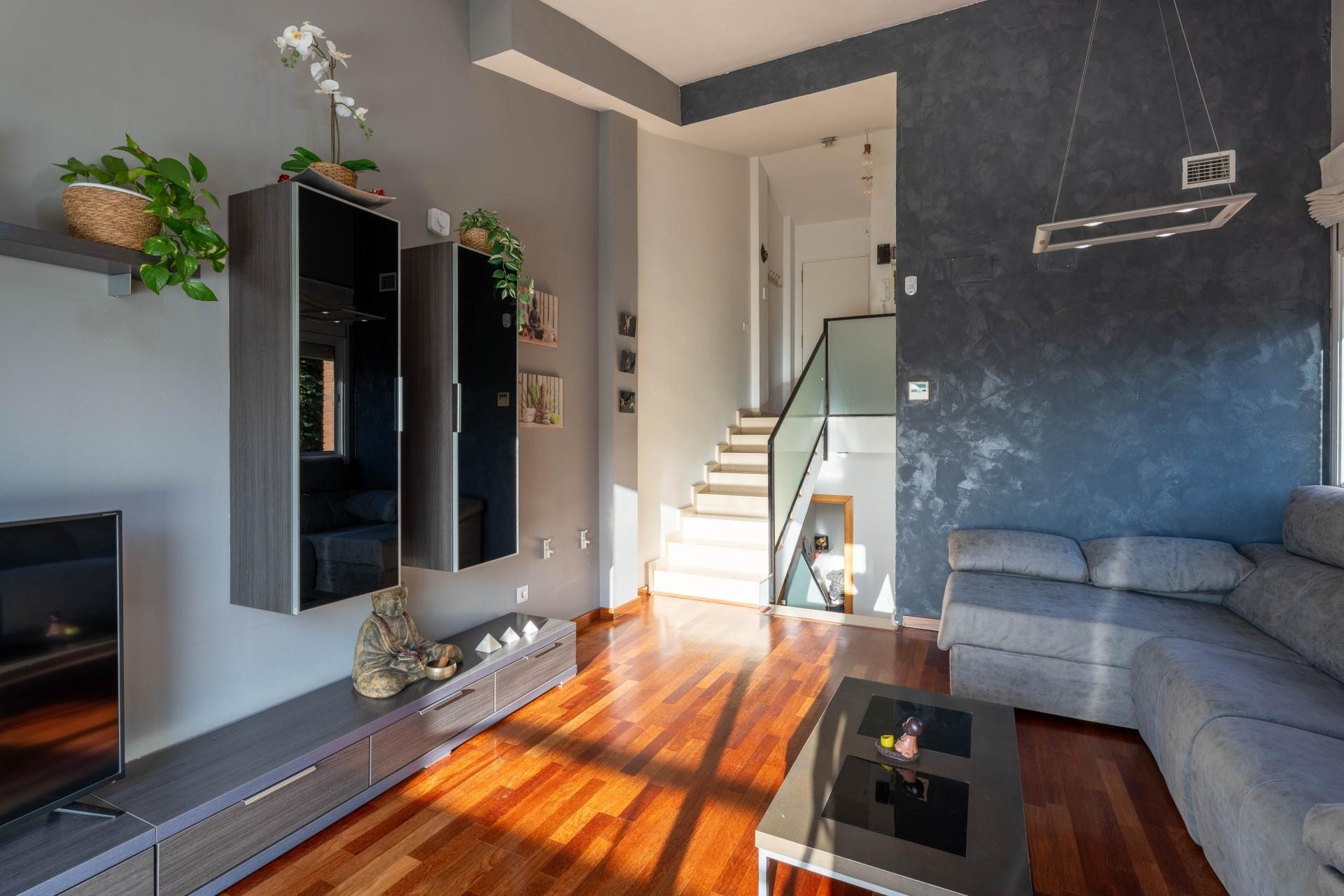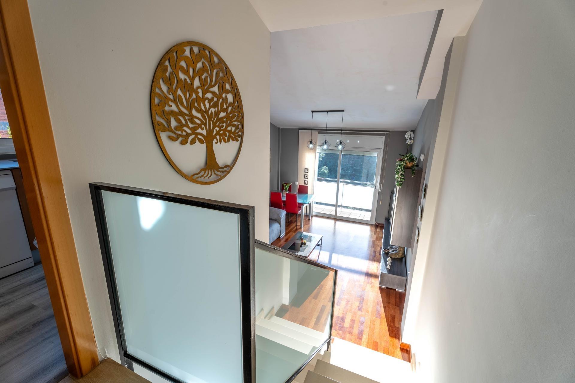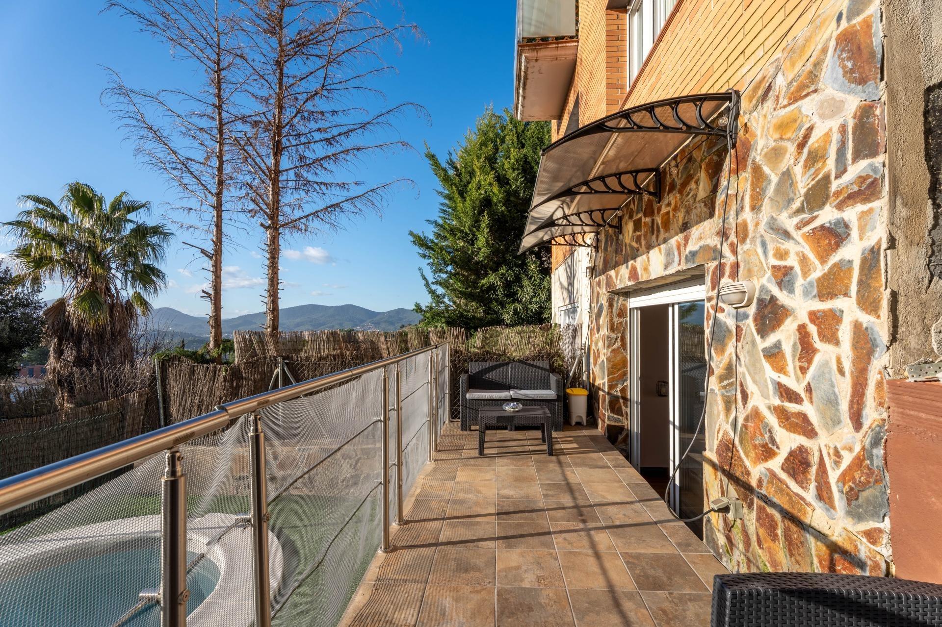 Te presentamos esta acogedora casa adosada situada en la zona residencial de Can Palet de Vista Alegre, en Terrassa. Un entorno tranquilo, rodeado de zonas verdes y perfectamente comunicado con la Carretera de Martorell, a solo 10 minutos del centro de la ciudad de Terrassa. Una ubicación ideal para quien busca calidad de vida sin renunciar a la proximidad de todos los servicios. La vivienda cuenta con una superficie construida de 126 m² sobre una parcela de 224 m², distribuidos en medias plantas que aportan dinamismo y diferenciación de espacios. Al acceder a la propiedad, nos recibe un agradable patio delantero con zona de barbacoa y espacio para aparcar el vehículo. En el interior, a la planta de entrada, encontramos un baño de cortesía y una cocina independiente, cómoda y funcional. Bajando unas escaleras llegamos al salón-comedor, de unos 25 m², un espacio amplio y luminoso con salida a una terracita orientada a oeste. Desde aquí se disfruta de unas vistas abiertas en la montaña, con la silueta de Montserrat presidiendo el horizonte como si fuera un auténtico cuadro natural. A la siguiente semi-planta encontramos dos habitaciones comunicadas entre sí, una doble y una individual, ideales como zona infantil o de estudio. Continuando el recorrido descendente, hay un gran baño completo con plato de ducha, totalmente reformado, y una tercera habitación doble. Una media planta más abajo descubrimos un amplio estudio polivalente, perfecto como gimnasio, sala de juegos, hombre cine, trastero o cualquier uso que se adapte a las necesidades de la familia. Finalmente, a la última semi-planta, se ubica la quinta habitación, una espaciosa suite de matrimonio con salida directa en el patio posterior, donde encontramos la zona ajardinada y la piscina, un espacio ideal para disfrutar de momentos de relax y encuentros al aire libre. La casa dispone de calefacción a gas e instalación de placas solares, aportando confort y eficiencia energética. Un hogar completo, con espacios versátiles, luz, vistas privilegiadas y un entorno residencial excelente para vivir con tranquilidad a tocar de la ciudad.~